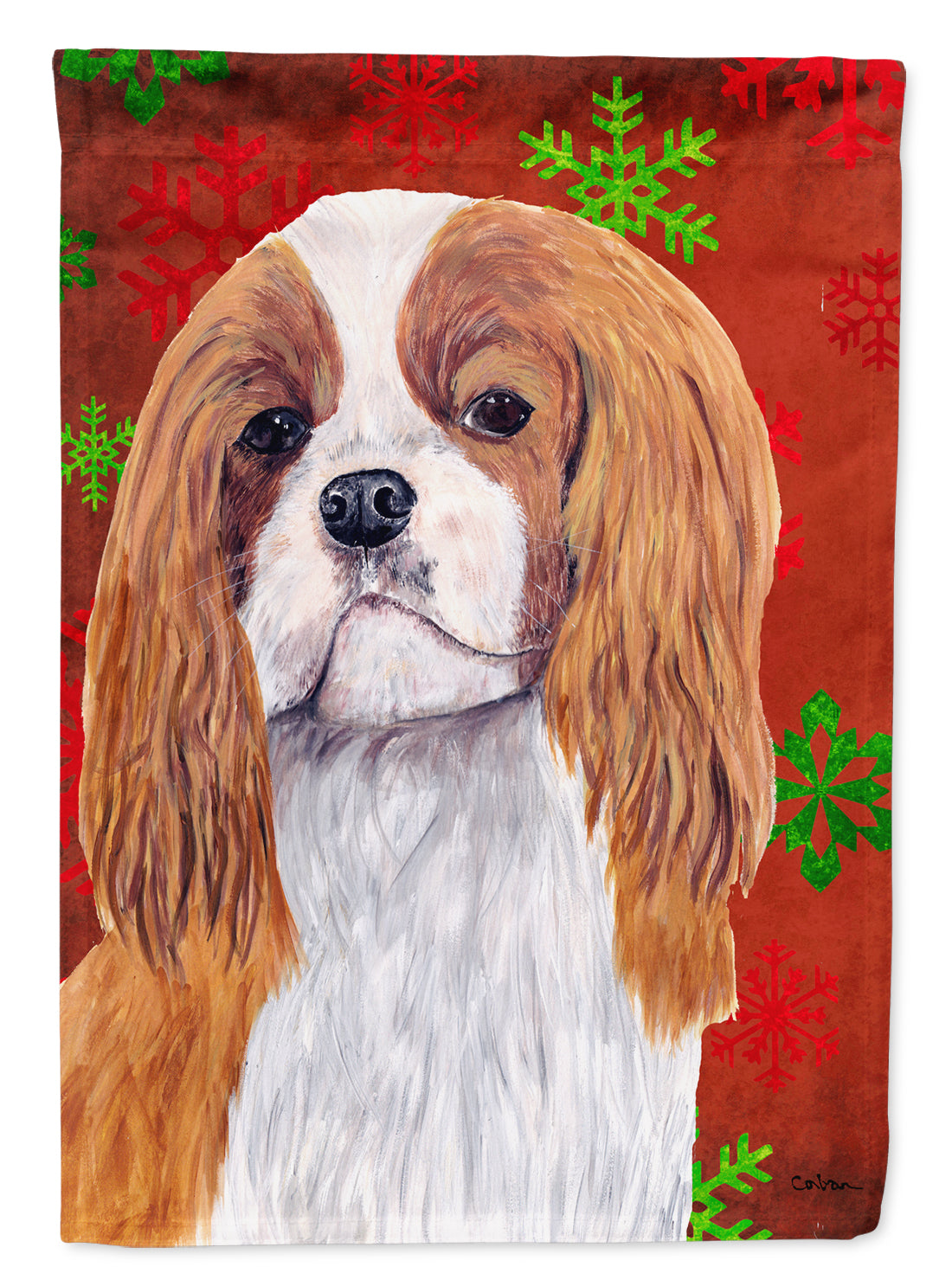 Cavalier Spaniel Red Green Snowflakes Holiday Christmas Flag Canvas House Size