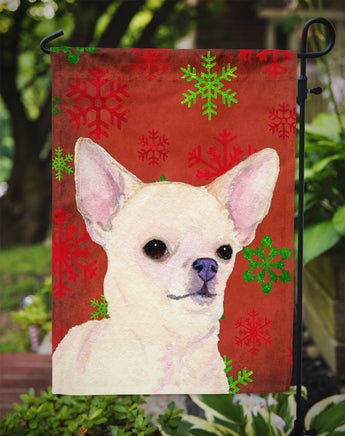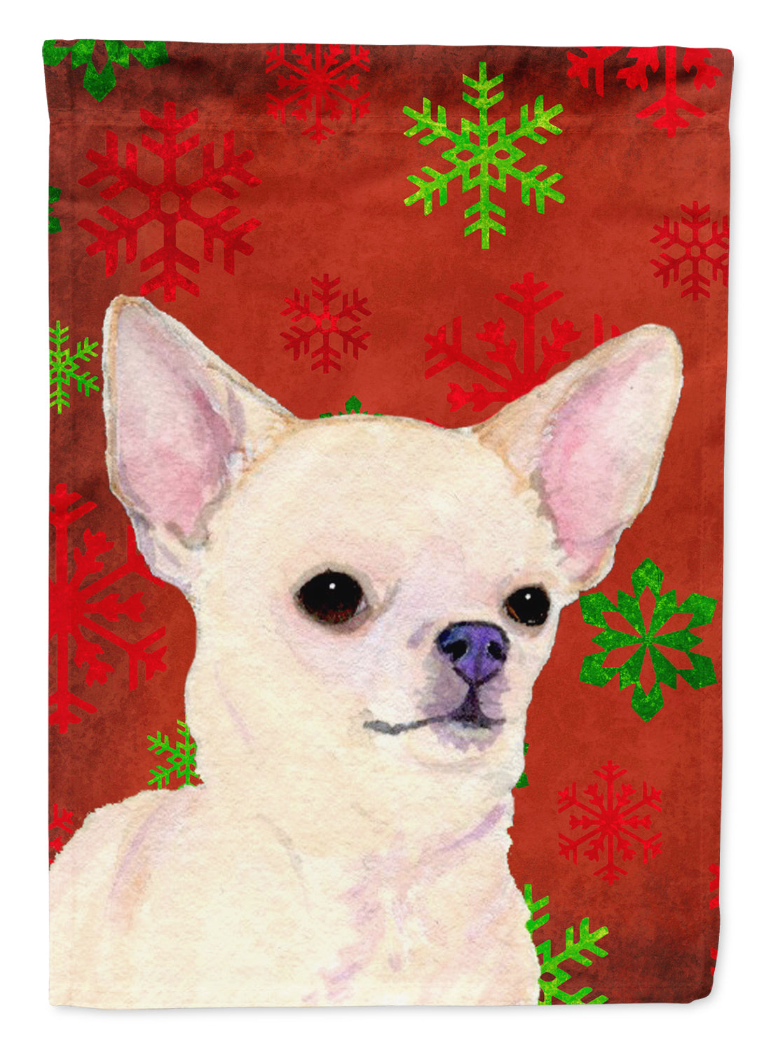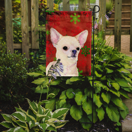 Chihuahua Red and Green Snowflakes Holiday Christmas Flag Garden Size