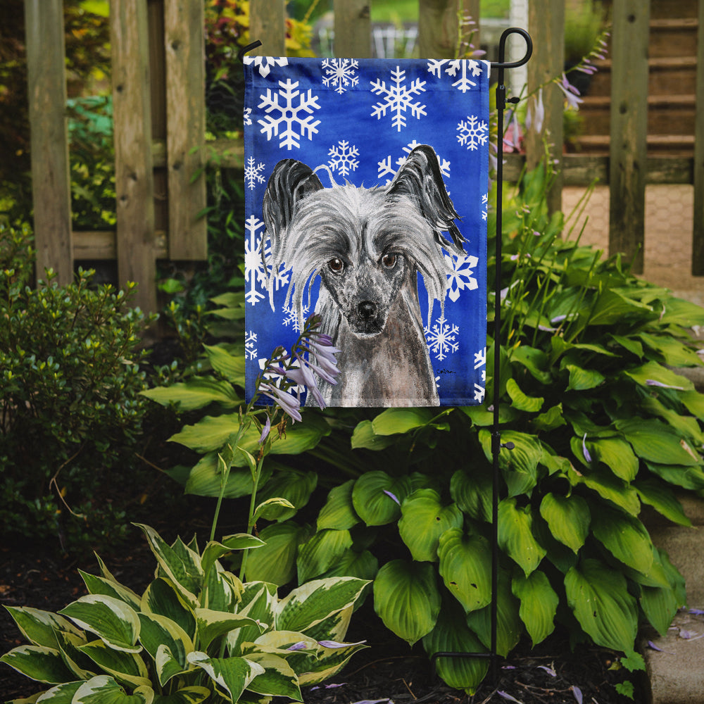 Chinese Crested Blue Snowflake Winter Flag Garden Size