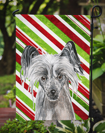 Chinese Crested Candy Cane Christmas Flag Garden Size