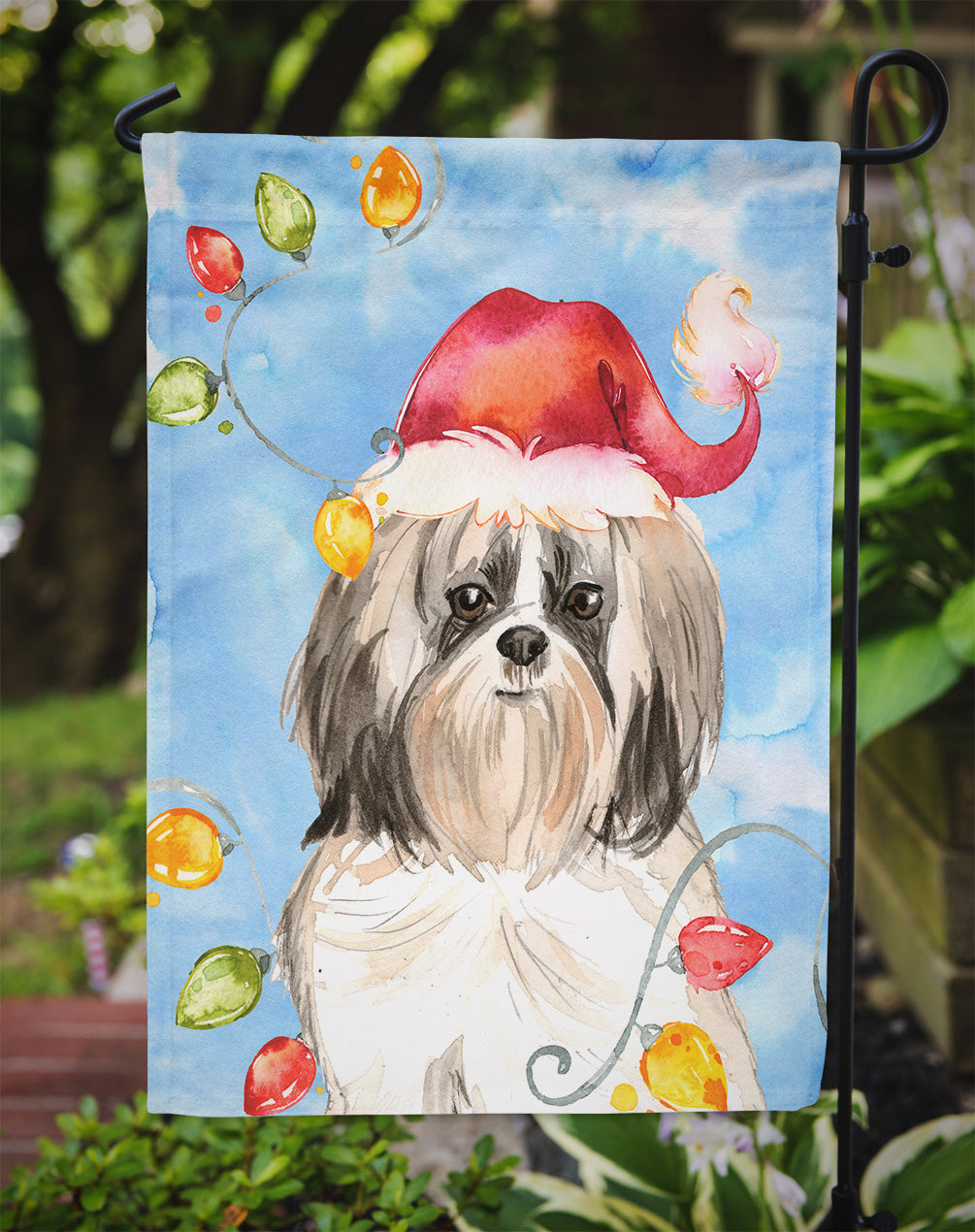 Decorate your space with our Christmas Shih Tzu artwork on a Garden Flag. Enhance the beauty of your garden, patio, or yard with Caroline's Treasures Decorative Garden Flag, proudly made in the USA. Crafted from two pieces of thick, double-sided polyester fabric, this 2-ply garden flag is designed to withstand various weather conditions, making it water-resistant and weatherproof. Featuring correctly readable words on both sides, this garden flag offers a delightful visual experience from any angle. With its heavier weight, it stands out among other garden flags, ensuring stability and durability even in wind, rain, and snow. Measuring approximately 11 1/4 inches by 15 1/2 inches, this flag allows you to personalize your outdoor decor. It comes with a 1 1/2-inch sleeve sewn in, allowing easy attachment to any standard garden flag stand or garden size porch hanger (sold separately). Make a statement in your outdoor space with Caroline's Treasures Decorative Garden Flag, a vibrant and high-quality flag that adds color and personality to your surroundings. Proudly made in the USA, it's a symbol of quality craftsmanship and attention to detail.