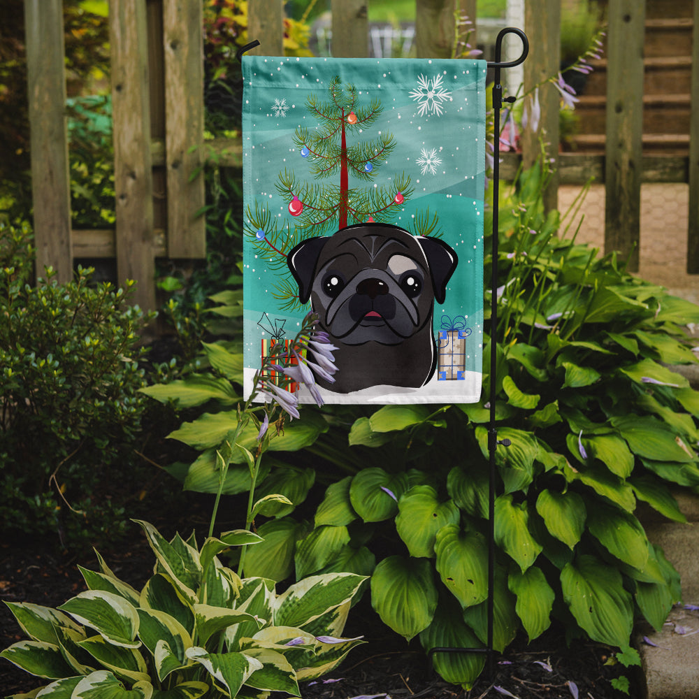 Decorate your space with our Christmas Pug artwork on a Garden Flag. Enhance the beauty of your garden, patio, or yard with Caroline's Treasures Decorative Garden Flag, proudly made in the USA. Crafted from two pieces of thick, double-sided polyester fabric, this 2-ply garden flag is designed to withstand various weather conditions, making it water-resistant and weatherproof. Featuring correctly readable words on both sides, this garden flag offers a delightful visual experience from any angle. With its heavier weight, it stands out among other garden flags, ensuring stability and durability even in wind, rain, and snow. Measuring approximately 11 1/4 inches by 15 1/2 inches, this flag allows you to personalize your outdoor decor. It comes with a 1 1/2-inch sleeve sewn in, allowing easy attachment to any standard garden flag stand or garden size porch hanger (sold separately). Make a statement in your outdoor space with Caroline's Treasures Decorative Garden Flag, a vibrant and high-quality flag that adds color and personality to your surroundings. Proudly made in the USA, it's a symbol of quality craftsmanship and attention to detail.
