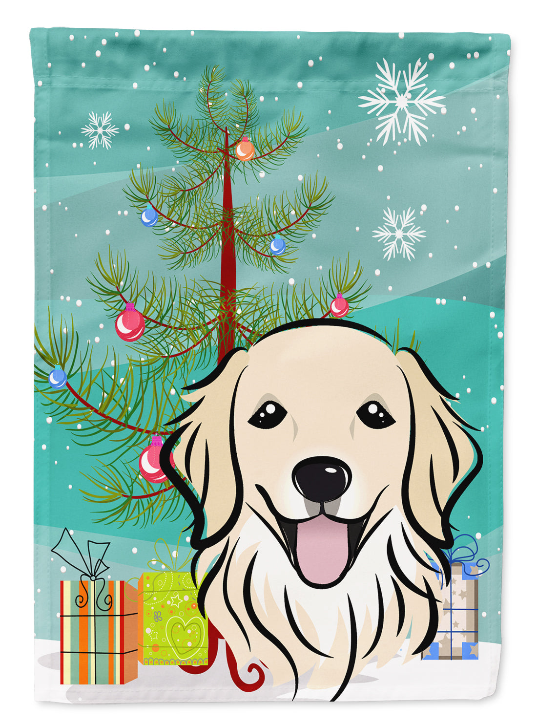 Decorate your space with our Christmas Golden Retriever artwork on a Garden Flag. Enhance the beauty of your garden, patio, or yard with Caroline's Treasures Decorative Garden Flag, proudly made in the USA. Crafted from two pieces of thick, double-sided polyester fabric, this 2-ply garden flag is designed to withstand various weather conditions, making it water-resistant and weatherproof. Featuring correctly readable words on both sides, this garden flag offers a delightful visual experience from any angle. With its heavier weight, it stands out among other garden flags, ensuring stability and durability even in wind, rain, and snow. Measuring approximately 11 1/4 inches by 15 1/2 inches, this flag allows you to personalize your outdoor decor. It comes with a 1 1/2-inch sleeve sewn in, allowing easy attachment to any standard garden flag stand or garden size porch hanger (sold separately). Make a statement in your outdoor space with Caroline's Treasures Decorative Garden Flag, a vibrant and high-quality flag that adds color and personality to your surroundings. Proudly made in the USA, it's a symbol of quality craftsmanship and attention to detail.