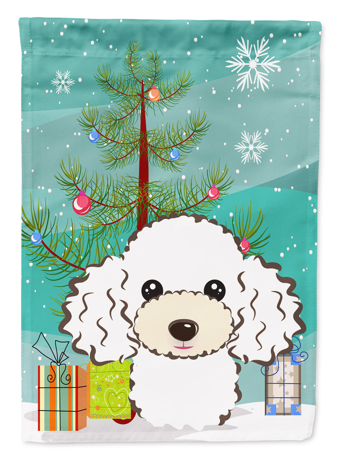Decorate your space with our Christmas Poodle artwork on a Garden Flag. Enhance the beauty of your garden, patio, or yard with Caroline's Treasures Decorative Garden Flag, proudly made in the USA. Crafted from two pieces of thick, double-sided polyester fabric, this 2-ply garden flag is designed to withstand various weather conditions, making it water-resistant and weatherproof. Featuring correctly readable words on both sides, this garden flag offers a delightful visual experience from any angle. With its heavier weight, it stands out among other garden flags, ensuring stability and durability even in wind, rain, and snow. Measuring approximately 11 1/4 inches by 15 1/2 inches, this flag allows you to personalize your outdoor decor. It comes with a 1 1/2-inch sleeve sewn in, allowing easy attachment to any standard garden flag stand or garden size porch hanger (sold separately). Make a statement in your outdoor space with Caroline's Treasures Decorative Garden Flag, a vibrant and high-quality flag that adds color and personality to your surroundings. Proudly made in the USA, it's a symbol of quality craftsmanship and attention to detail.