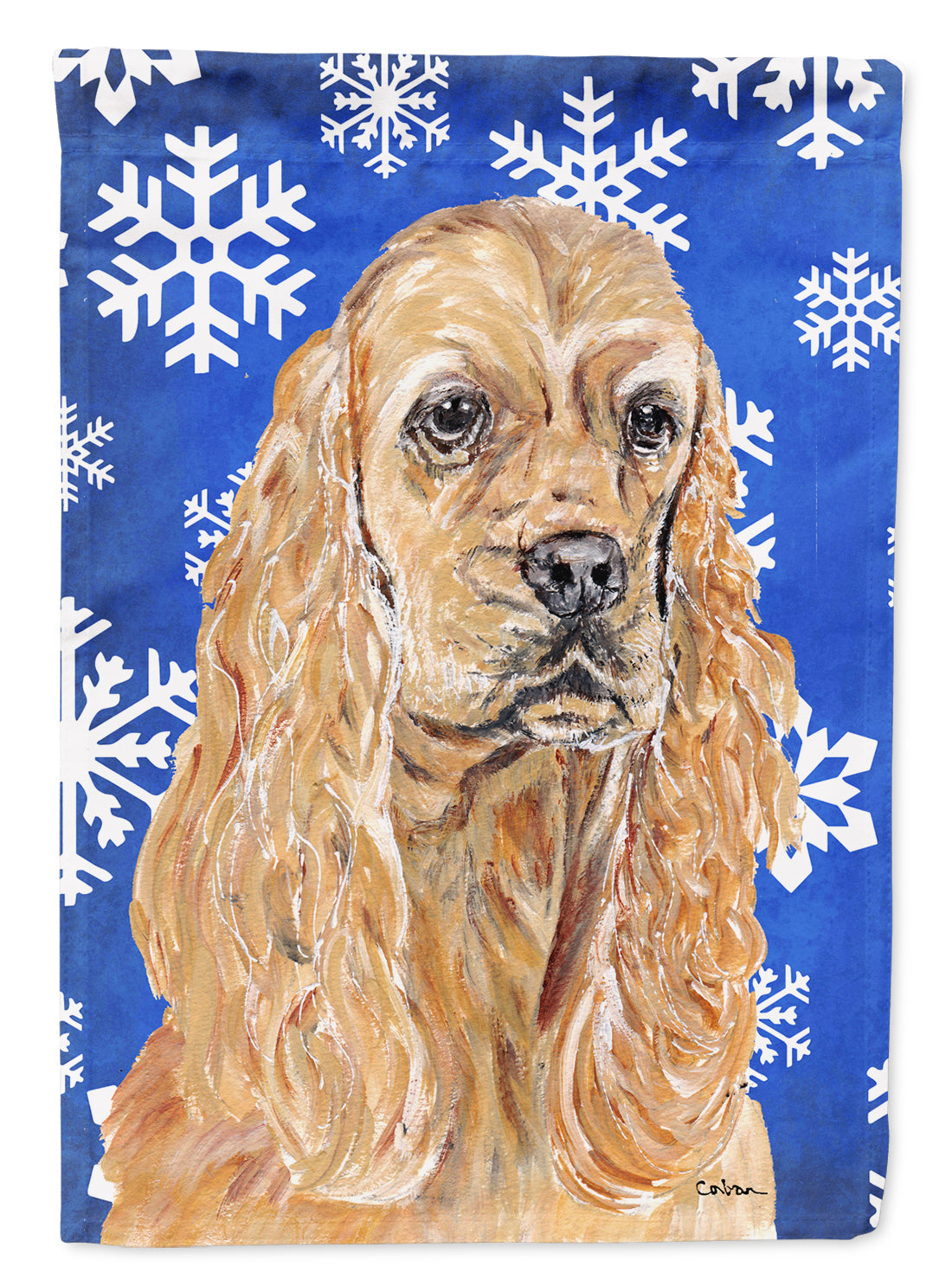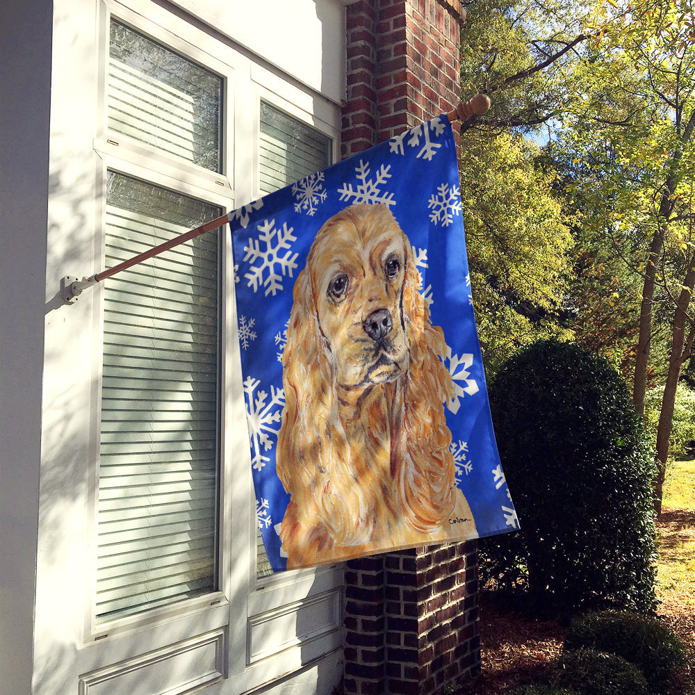 Cocker Spaniel Blue Snowflake Winter Flag Canvas House Size