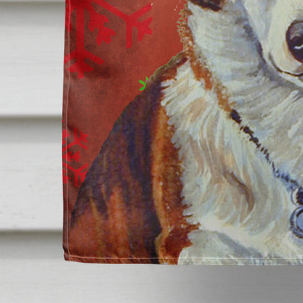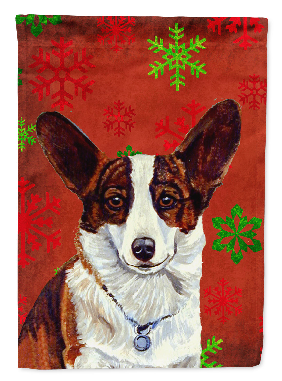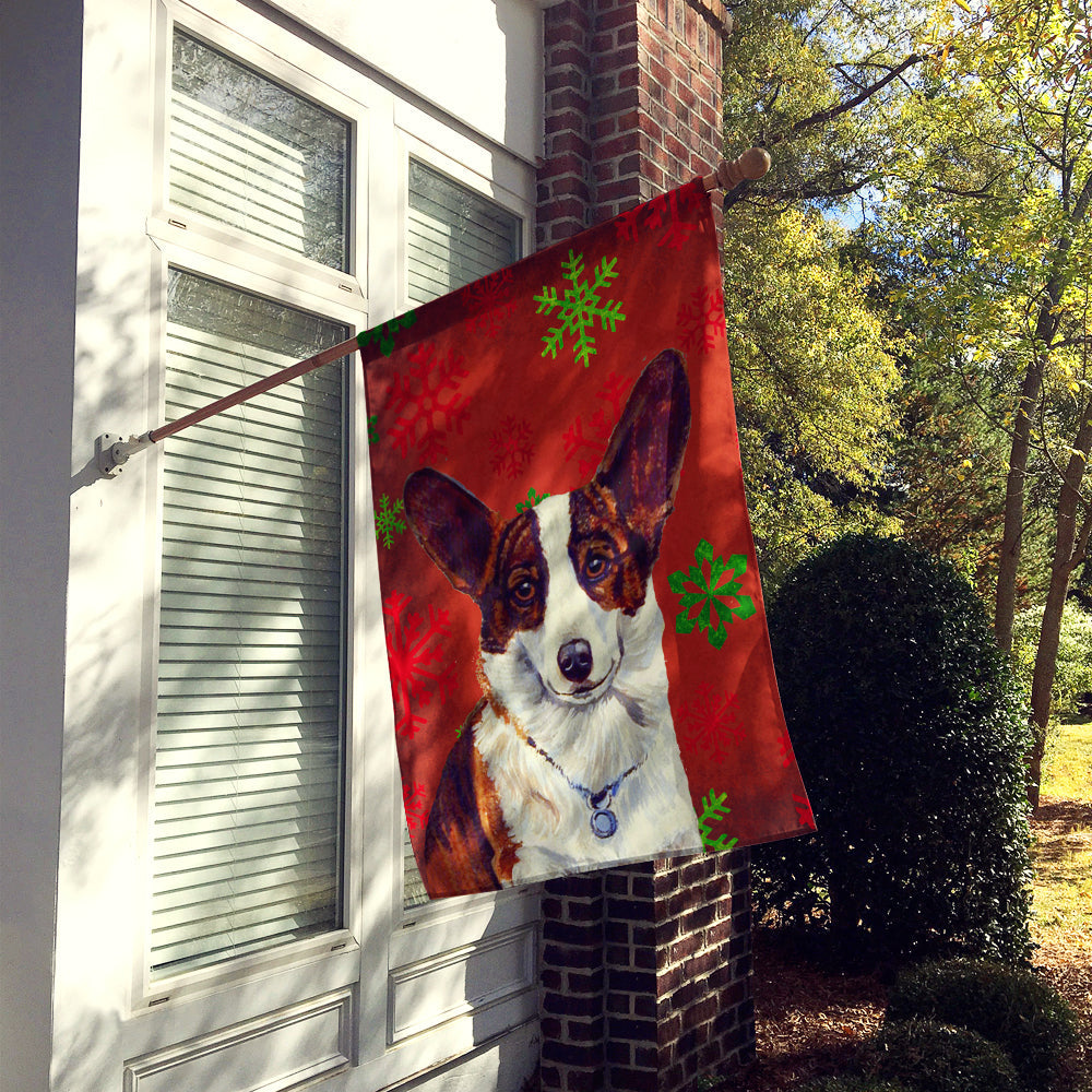 Corgi Red and Green Snowflakes Holiday Christmas Flag Canvas House Size