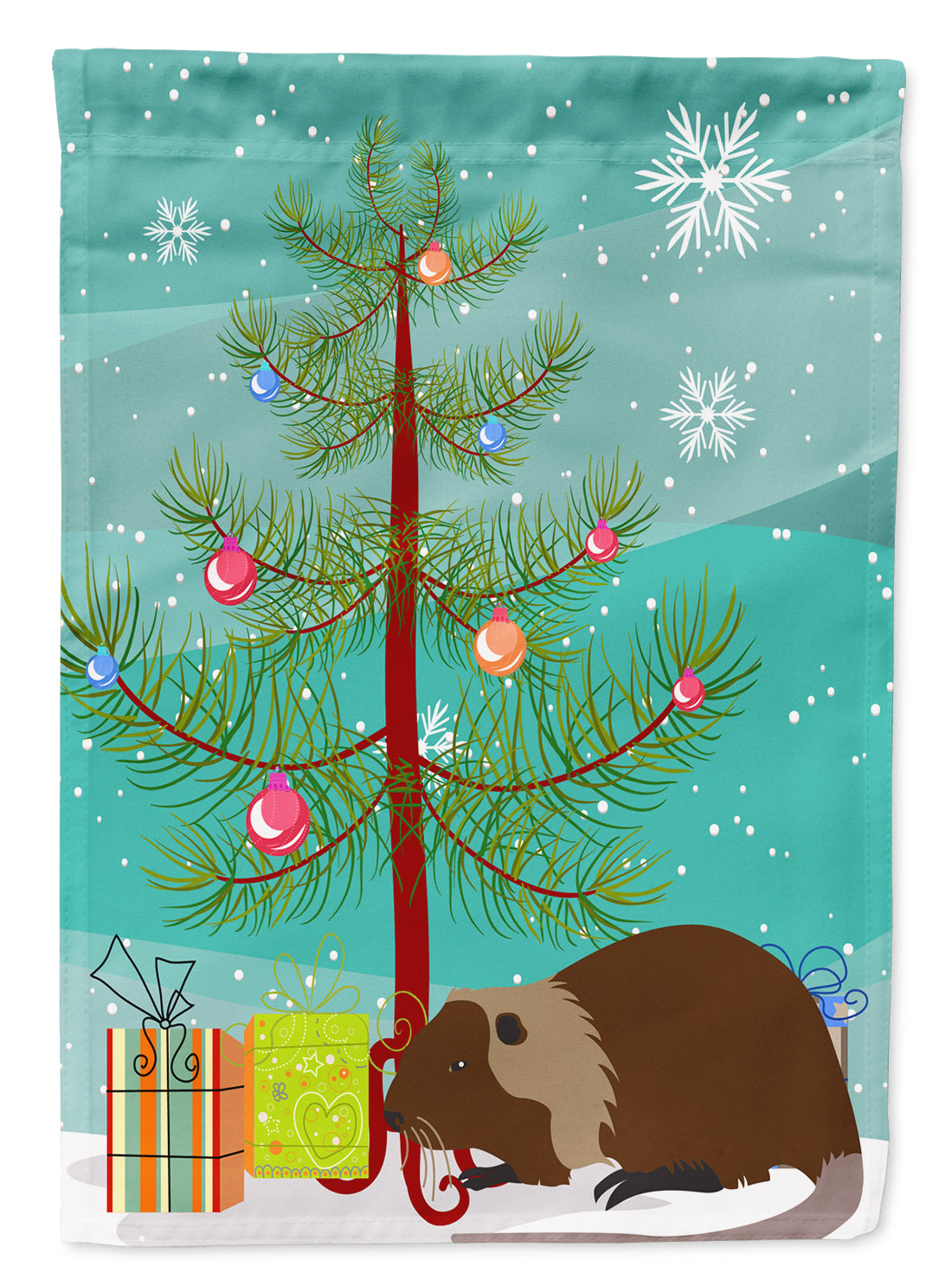 Decorate your space with our Christmas Coypu Nutria River Rat artwork on a Garden Flag. Enhance the beauty of your garden, patio, or yard with Caroline's Treasures Decorative Garden Flag, proudly made in the USA. Crafted from two pieces of thick, double-sided polyester fabric, this 2-ply garden flag is designed to withstand various weather conditions, making it water-resistant and weatherproof. Featuring correctly readable words on both sides, this garden flag offers a delightful visual experience from any angle. With its heavier weight, it stands out among other garden flags, ensuring stability and durability even in wind, rain, and snow. Measuring approximately 11 1/4 inches by 15 1/2 inches, this flag allows you to personalize your outdoor decor. It comes with a 1 1/2-inch sleeve sewn in, allowing easy attachment to any standard garden flag stand or garden size porch hanger (sold separately). Make a statement in your outdoor space with Caroline's Treasures Decorative Garden Flag, a vibrant and high-quality flag that adds color and personality to your surroundings. Proudly made in the USA, it's a symbol of quality craftsmanship and attention to detail.