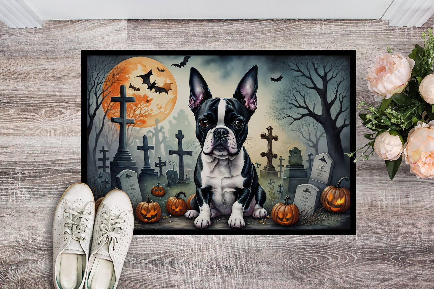 Boston Terrier Spooky Halloween Indoor or Outdoor Mat 24x36