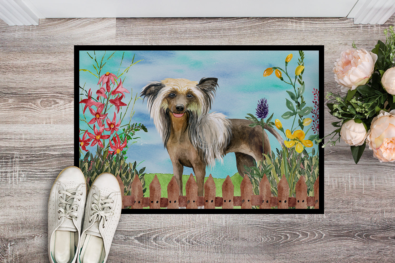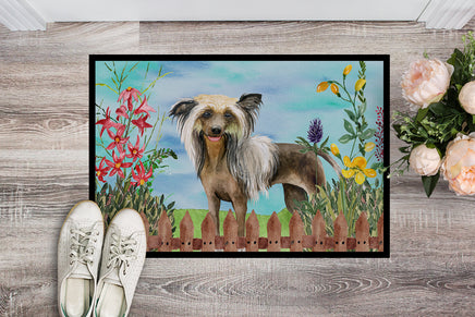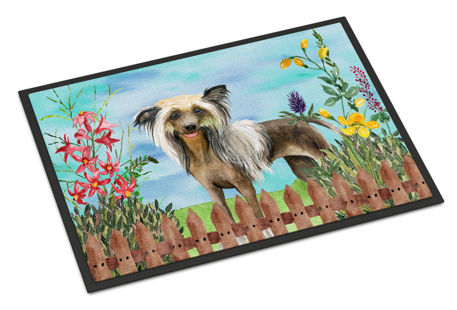 Decorate your space with Caroline's Treasures Chinese Crested artwork on a Doormat. Bring a bit of Spring into your home with a Spring Doormat. Welcome your guests in style with Caroline's Treasures Artwork Door Mat, designed to withstand almost any weather condition. This mat, measuring approximately 18 by 27 inches, is held together by durable black binding tape. Its top layer, composed of polyester felt, is dyed with the eye-catching image you see on the mat. A few layers below provide the mat with stability, while its rubber bottom is stamped to help prevent slipping and ensures safety. Caroline's Treasures mat works wonderfully as both an indoor or outdoor door mat. For cleaning, simply hose it off with water or use a power washer - no need for any cleaner that produces suds. Avoid scrubbing with a brush, instead, opt for the vacuum on floor setting. Designed manufactured and printed in the USA, this mat is a perfect addition to your porch, outdoor kitchen, entryway, or any indoor space. Its unique design makes it a charming decorative rug that greets your guests and adds a stylish touch to your home decor.