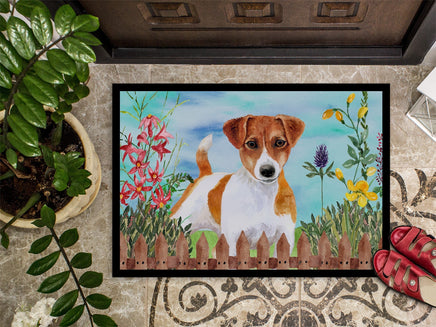 Decorate your space with Caroline's Treasures Jack Russell Terrier artwork on a Doormat. Bring a bit of Spring into your home with a Spring Doormat. Welcome your guests in style with Caroline's Treasures Artwork Door Mat, designed to withstand almost any weather condition. This mat, measuring approximately 18 by 27 inches, is held together by durable black binding tape. Its top layer, composed of polyester felt, is dyed with the eye-catching image you see on the mat. A few layers below provide the mat with stability, while its rubber bottom is stamped to help prevent slipping and ensures safety. Caroline's Treasures mat works wonderfully as both an indoor or outdoor door mat. For cleaning, simply hose it off with water or use a power washer - no need for any cleaner that produces suds. Avoid scrubbing with a brush, instead, opt for the vacuum on floor setting. Designed manufactured and printed in the USA, this mat is a perfect addition to your porch, outdoor kitchen, entryway, or any indoor space. Its unique design makes it a charming decorative rug that greets your guests and adds a stylish touch to your home decor.