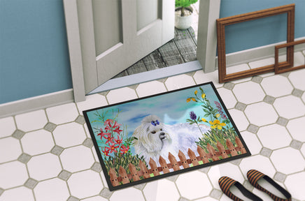 Decorate your space with Caroline's Treasures Maltese artwork on a Doormat. Bring a bit of Spring into your home with a Spring Doormat. Welcome your guests in style with Caroline's Treasures Artwork Door Mat, designed to withstand almost any weather condition. This mat, measuring approximately 18 by 27 inches, is held together by durable black binding tape. Its top layer, composed of polyester felt, is dyed with the eye-catching image you see on the mat. A few layers below provide the mat with stability, while its rubber bottom is stamped to help prevent slipping and ensures safety. Caroline's Treasures mat works wonderfully as both an indoor or outdoor door mat. For cleaning, simply hose it off with water or use a power washer - no need for any cleaner that produces suds. Avoid scrubbing with a brush, instead, opt for the vacuum on floor setting. Designed manufactured and printed in the USA, this mat is a perfect addition to your porch, outdoor kitchen, entryway, or any indoor space. Its unique design makes it a charming decorative rug that greets your guests and adds a stylish touch to your home decor.