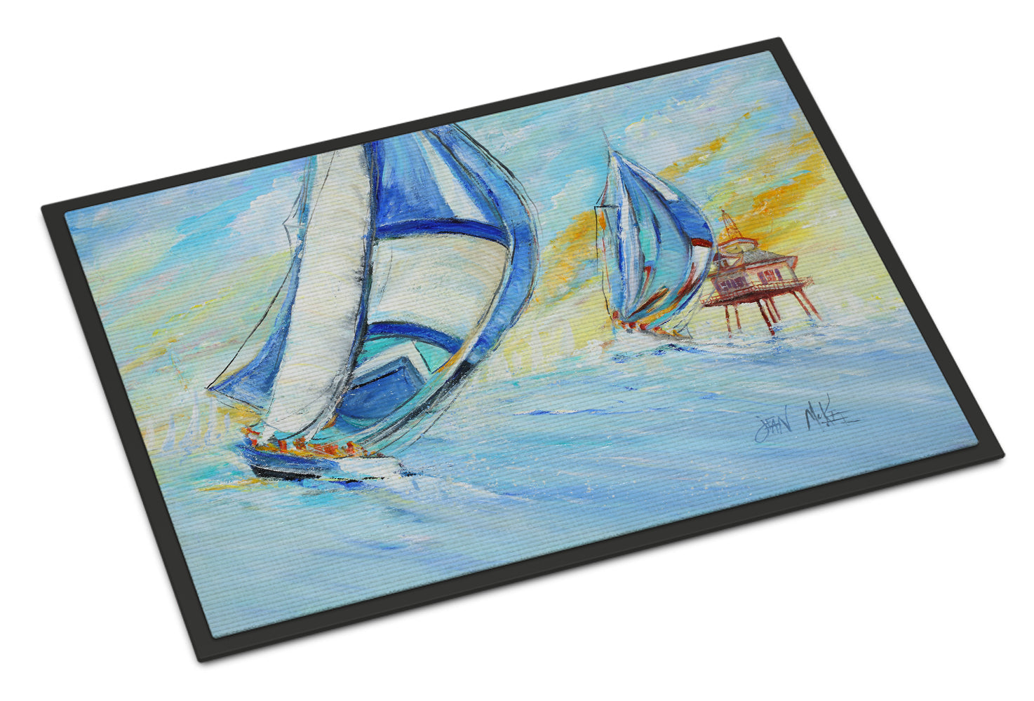 Sailboats and Middle Bay Lighthouse Indoor or Outdoor Mat 24x36 JMK1005JMAT