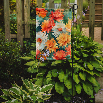 Decorate your space with Caroline's Treasures Chrysanthemums artwork on a Garden Flag. Enhance the beauty of your garden, patio, or yard with Caroline's Treasures Decorative Garden Flag, proudly made in the USA. Crafted from two pieces of thick, double-sided polyester fabric, this 2-ply garden flag is designed to withstand various weather conditions, making it water-resistant and weatherproof. Featuring correctly readable words on both sides, this garden flag offers a delightful visual experience from any angle. With its heavier weight, it stands out among other garden flags, ensuring stability and durability even in wind, rain, and snow. Measuring approximately 11 1/4 inches by 15 1/2 inches, this flag allows you to personalize your outdoor decor. It comes with a 1 1/2-inch sleeve sewn in, allowing easy attachment to any standard garden flag stand or garden size porch hanger (sold separately). Make a statement in your outdoor space with Caroline's Treasures Decorative Garden Flag, a vibrant and high-quality flag that adds color and personality to your surroundings. Proudly made in the USA, it's a symbol of quality craftsmanship and attention to detail.
