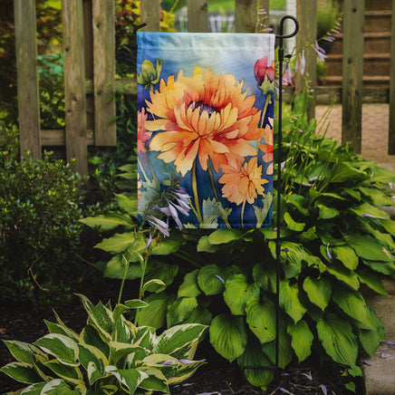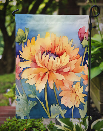 Decorate your space with Caroline's Treasures Chrysanthemums artwork on a Garden Flag. Enhance the beauty of your garden, patio, or yard with Caroline's Treasures Decorative Garden Flag, proudly made in the USA. Crafted from two pieces of thick, double-sided polyester fabric, this 2-ply garden flag is designed to withstand various weather conditions, making it water-resistant and weatherproof. Featuring correctly readable words on both sides, this garden flag offers a delightful visual experience from any angle. With its heavier weight, it stands out among other garden flags, ensuring stability and durability even in wind, rain, and snow. Measuring approximately 11 1/4 inches by 15 1/2 inches, this flag allows you to personalize your outdoor decor. It comes with a 1 1/2-inch sleeve sewn in, allowing easy attachment to any standard garden flag stand or garden size porch hanger (sold separately). Make a statement in your outdoor space with Caroline's Treasures Decorative Garden Flag, a vibrant and high-quality flag that adds color and personality to your surroundings. Proudly made in the USA, it's a symbol of quality craftsmanship and attention to detail.