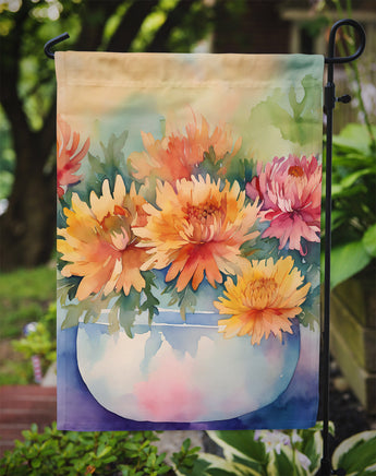 Decorate your space with Caroline's Treasures Chrysanthemums artwork on a Garden Flag. Enhance the beauty of your garden, patio, or yard with Caroline's Treasures Decorative Garden Flag, proudly made in the USA. Crafted from two pieces of thick, double-sided polyester fabric, this 2-ply garden flag is designed to withstand various weather conditions, making it water-resistant and weatherproof. Featuring correctly readable words on both sides, this garden flag offers a delightful visual experience from any angle. With its heavier weight, it stands out among other garden flags, ensuring stability and durability even in wind, rain, and snow. Measuring approximately 11 1/4 inches by 15 1/2 inches, this flag allows you to personalize your outdoor decor. It comes with a 1 1/2-inch sleeve sewn in, allowing easy attachment to any standard garden flag stand or garden size porch hanger (sold separately). Make a statement in your outdoor space with Caroline's Treasures Decorative Garden Flag, a vibrant and high-quality flag that adds color and personality to your surroundings. Proudly made in the USA, it's a symbol of quality craftsmanship and attention to detail.