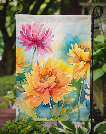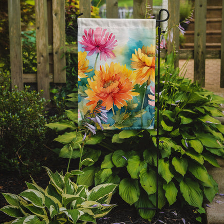 Decorate your space with Caroline's Treasures Chrysanthemums artwork on a Garden Flag. Enhance the beauty of your garden, patio, or yard with Caroline's Treasures Decorative Garden Flag, proudly made in the USA. Crafted from two pieces of thick, double-sided polyester fabric, this 2-ply garden flag is designed to withstand various weather conditions, making it water-resistant and weatherproof. Featuring correctly readable words on both sides, this garden flag offers a delightful visual experience from any angle. With its heavier weight, it stands out among other garden flags, ensuring stability and durability even in wind, rain, and snow. Measuring approximately 11 1/4 inches by 15 1/2 inches, this flag allows you to personalize your outdoor decor. It comes with a 1 1/2-inch sleeve sewn in, allowing easy attachment to any standard garden flag stand or garden size porch hanger (sold separately). Make a statement in your outdoor space with Caroline's Treasures Decorative Garden Flag, a vibrant and high-quality flag that adds color and personality to your surroundings. Proudly made in the USA, it's a symbol of quality craftsmanship and attention to detail.