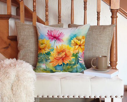 Throw Pillow featuring breed specific Chrysanthemums artwork. Add a touch of vibrancy and comfort to your outdoor seating with Caroline's Treasures Fabric Decorative Pillow. Measuring approximately 14 inches by 14 inches, this outdoor pillow is crafted to elevate the appeal of your patio furniture, infusing it with vivid color and artistic flair. The pillow includes a 100% Polyester Fabric sham filled with a quality pillow form to provide superior comfort. Innovatively made from Caroline's Treasures brand new material, specifically woven for its water resistance, this pillow is designed for durability. The soft canvas fabric offers versatility in use, fit for your indoor couch or your outdoor patio, porch, or veranda. The fabric is dyed with colorfast dyes built for resilience against weather conditions, ensuring the pillow retains its beauty over time. Constructed by sewing three fabric pieces to create a sham, the polyester insert is then nestled inside to form the pillow, resulting in an overstuffed pillow that maintains its shape. Both the sham and the pillow insert are proudly made in the United States. As the pillows are handcrafted, there may be minor variations in size, further enhancing their unique charm. Experience comfort in style with Caroline's Treasures Fabric Decorative Pillow.