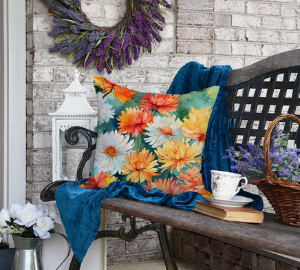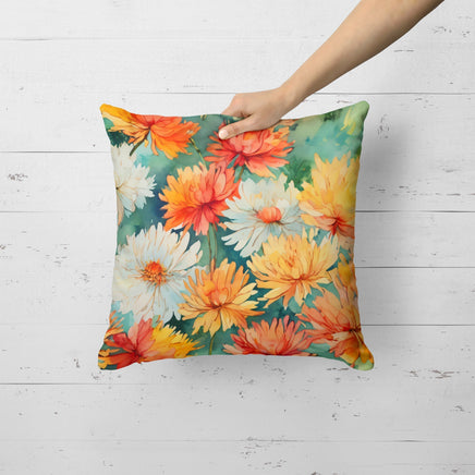 Throw Pillow featuring breed specific Chrysanthemums artwork. Revitalize your outdoor or indoor living space with Caroline's Treasures 18x18 Fabric Decorative Pillow. With a generously sized dimension of approximately 18 inches by 18 inches, this pillow makes a comfortable and aesthetic addition to any seating area. Made from a unique, water-resistant material developed by Caroline's Treasures, the pillow sham is 100% polyester fabric that's durable and ready to weather any condition. Its vibrant, full-color artwork will not fade over time as it is dyed with color-fast dyes. Whether you place it on your patio furniture, porch, veranda, or indoor couch, its soft canvas fabric ensures a cozy experience. The pillow is handcrafted in the United States, featuring a sham created from three pieces of fabric and a polyester insert for enduring shape and overstuffed comfort. Despite being robustly built to endure the outdoors, it is as soft and snug as your favorite indoor cushions. Please note, as all Caroline's Treasures pillows are handmade, sizes may vary slightly, adding to the charm of this unique decorative item.
