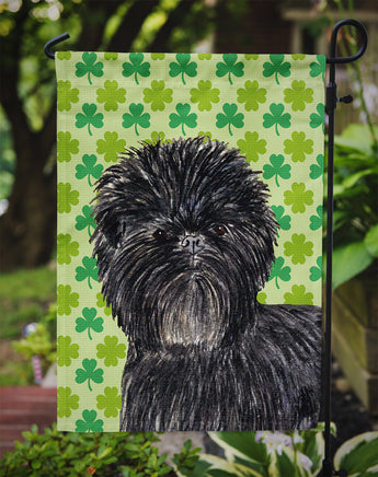 Decorate your space with our St Patrick's Day Affenpinscher artwork on a Garden Flag. Enhance the beauty of your garden, patio, or yard with Caroline's Treasures Decorative Garden Flag, proudly made in the USA. Crafted from two pieces of thick, double-sided polyester fabric, this 2-ply garden flag is designed to withstand various weather conditions, making it water-resistant and weatherproof. Featuring correctly readable words on both sides, this garden flag offers a delightful visual experience from any angle. With its heavier weight, it stands out among other garden flags, ensuring stability and durability even in wind, rain, and snow. Measuring approximately 11 1/4 inches by 15 1/2 inches, this flag allows you to personalize your outdoor decor. It comes with a 1 1/2-inch sleeve sewn in, allowing easy attachment to any standard garden flag stand or garden size porch hanger (sold separately). Make a statement in your outdoor space with Caroline's Treasures Decorative Garden Flag, a vibrant and high-quality flag that adds color and personality to your surroundings. Proudly made in the USA, it's a symbol of quality craftsmanship and attention to detail.