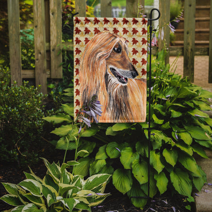 Decorate your space with our Afghan Hound artwork on a Garden Flag. Bring a bit of Fall into your home with a Fall Garden Flag. Enhance the beauty of your garden, patio, or yard with Caroline's Treasures Decorative Garden Flag, proudly made in the USA. Crafted from two pieces of thick, double-sided polyester fabric, this 2-ply garden flag is designed to withstand various weather conditions, making it water-resistant and weatherproof. Featuring correctly readable words on both sides, this garden flag offers a delightful visual experience from any angle. With its heavier weight, it stands out among other garden flags, ensuring stability and durability even in wind, rain, and snow. Measuring approximately 11 1/4 inches by 15 1/2 inches, this flag allows you to personalize your outdoor decor. It comes with a 1 1/2-inch sleeve sewn in, allowing easy attachment to any standard garden flag stand or garden size porch hanger (sold separately). Make a statement in your outdoor space with Caroline's Treasures Decorative Garden Flag, a vibrant and high-quality flag that adds color and personality to your surroundings. Proudly made in the USA, it's a symbol of quality craftsmanship and attention to detail.
