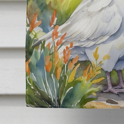 House Flag featuring breed specific Willow Ptarmigan artwork. Presenting our Heavy Duty Polyester House Size Decorative Sleeve Pole Flag, a vibrant addition to enhance the aesthetic appeal of your home. This large decorative flag, measuring approximately 28 x 40 inches, offers ample coverage and visibility. Each flag is meticulously sewn and made individually, ensuring a unique piece that may slightly vary in size. It's a sleeve pole flag, designed to fit a standard decorative flag pole effortlessly. Please note that the flag pole and bracket are not included and should be purchased separately. What sets our flag apart is its dual-sided print. The design is mirrored on both sides of the fabric, allowing for uniform visibility regardless of the angle. Printed in full color, our flag showcases vibrant hues that truly stand out. To ensure lasting vibrancy and durability, the dyes are heat-set into the fabric. This ensures your flag remains bright and captivating through various weather conditions. Elevate the look of your home with our Heavy Duty Polyester House Size Decorative Sleeve Pole Flag!