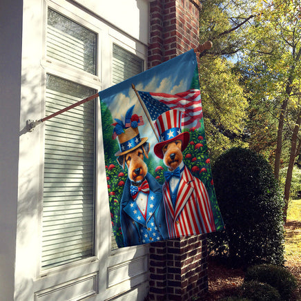 Decorate your space with our Airedale Terrier artwork on a Large Flag. Presenting our Heavy Duty Polyester House Size Decorative Sleeve Pole Flag, a vibrant addition to enhance the aesthetic appeal of your home. This large decorative flag, measuring approximately 28 x 40 inches, offers ample coverage and visibility. Each flag is meticulously sewn and made individually, ensuring a unique piece that may slightly vary in size. It's a sleeve pole flag, designed to fit a standard decorative flag pole effortlessly. Please note that the flag pole and bracket are not included and should be purchased separately. What sets our flag apart is its dual-sided print. The design is mirrored on both sides of the fabric, allowing for uniform visibility regardless of the angle. Printed in full color, our flag showcases vibrant hues that truly stand out. To ensure lasting vibrancy and durability, the dyes are heat-set into the fabric. This ensures your flag remains bright and captivating through various weather conditions. Elevate the look of your home with our Heavy Duty Polyester House Size Decorative Sleeve Pole Flag!
