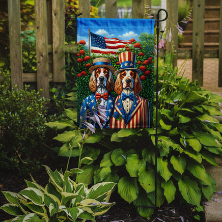 Decorate your space with our English Setter artwork on a Garden Flag. Enhance the beauty of your garden, patio, or yard with Caroline's Treasures Decorative Garden Flag, proudly made in the USA. Crafted from two pieces of thick, double-sided polyester fabric, this 2-ply garden flag is designed to withstand various weather conditions, making it water-resistant and weatherproof. Featuring correctly readable words on both sides, this garden flag offers a delightful visual experience from any angle. With its heavier weight, it stands out among other garden flags, ensuring stability and durability even in wind, rain, and snow. Measuring approximately 11 1/4 inches by 15 1/2 inches, this flag allows you to personalize your outdoor decor. It comes with a 1 1/2-inch sleeve sewn in, allowing easy attachment to any standard garden flag stand or garden size porch hanger (sold separately). Make a statement in your outdoor space with Caroline's Treasures Decorative Garden Flag, a vibrant and high-quality flag that adds color and personality to your surroundings. Proudly made in the USA, it's a symbol of quality craftsmanship and attention to detail.