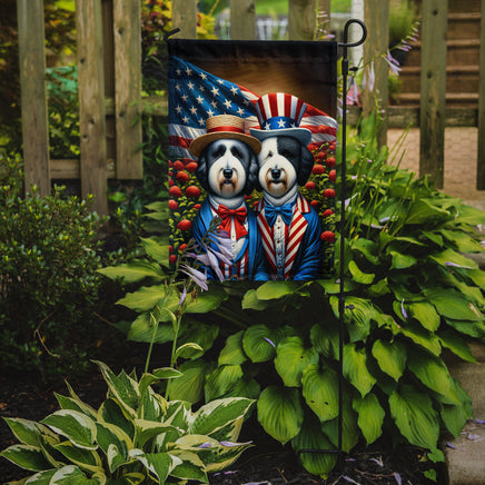 Decorate your space with our Old English Sheepdog artwork on a Garden Flag. Enhance the beauty of your garden, patio, or yard with Caroline's Treasures Decorative Garden Flag, proudly made in the USA. Crafted from two pieces of thick, double-sided polyester fabric, this 2-ply garden flag is designed to withstand various weather conditions, making it water-resistant and weatherproof. Featuring correctly readable words on both sides, this garden flag offers a delightful visual experience from any angle. With its heavier weight, it stands out among other garden flags, ensuring stability and durability even in wind, rain, and snow. Measuring approximately 11 1/4 inches by 15 1/2 inches, this flag allows you to personalize your outdoor decor. It comes with a 1 1/2-inch sleeve sewn in, allowing easy attachment to any standard garden flag stand or garden size porch hanger (sold separately). Make a statement in your outdoor space with Caroline's Treasures Decorative Garden Flag, a vibrant and high-quality flag that adds color and personality to your surroundings. Proudly made in the USA, it's a symbol of quality craftsmanship and attention to detail.