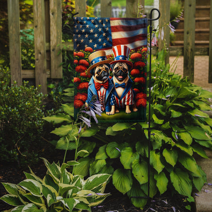 Decorate your space with our Pug artwork on a Garden Flag. Enhance the beauty of your garden, patio, or yard with Caroline's Treasures Decorative Garden Flag, proudly made in the USA. Crafted from two pieces of thick, double-sided polyester fabric, this 2-ply garden flag is designed to withstand various weather conditions, making it water-resistant and weatherproof. Featuring correctly readable words on both sides, this garden flag offers a delightful visual experience from any angle. With its heavier weight, it stands out among other garden flags, ensuring stability and durability even in wind, rain, and snow. Measuring approximately 11 1/4 inches by 15 1/2 inches, this flag allows you to personalize your outdoor decor. It comes with a 1 1/2-inch sleeve sewn in, allowing easy attachment to any standard garden flag stand or garden size porch hanger (sold separately). Make a statement in your outdoor space with Caroline's Treasures Decorative Garden Flag, a vibrant and high-quality flag that adds color and personality to your surroundings. Proudly made in the USA, it's a symbol of quality craftsmanship and attention to detail.