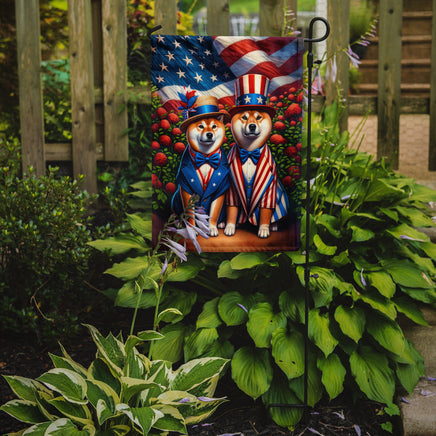 Decorate your space with our Shiba Inu artwork on a Garden Flag. Enhance the beauty of your garden, patio, or yard with Caroline's Treasures Decorative Garden Flag, proudly made in the USA. Crafted from two pieces of thick, double-sided polyester fabric, this 2-ply garden flag is designed to withstand various weather conditions, making it water-resistant and weatherproof. Featuring correctly readable words on both sides, this garden flag offers a delightful visual experience from any angle. With its heavier weight, it stands out among other garden flags, ensuring stability and durability even in wind, rain, and snow. Measuring approximately 11 1/4 inches by 15 1/2 inches, this flag allows you to personalize your outdoor decor. It comes with a 1 1/2-inch sleeve sewn in, allowing easy attachment to any standard garden flag stand or garden size porch hanger (sold separately). Make a statement in your outdoor space with Caroline's Treasures Decorative Garden Flag, a vibrant and high-quality flag that adds color and personality to your surroundings. Proudly made in the USA, it's a symbol of quality craftsmanship and attention to detail.