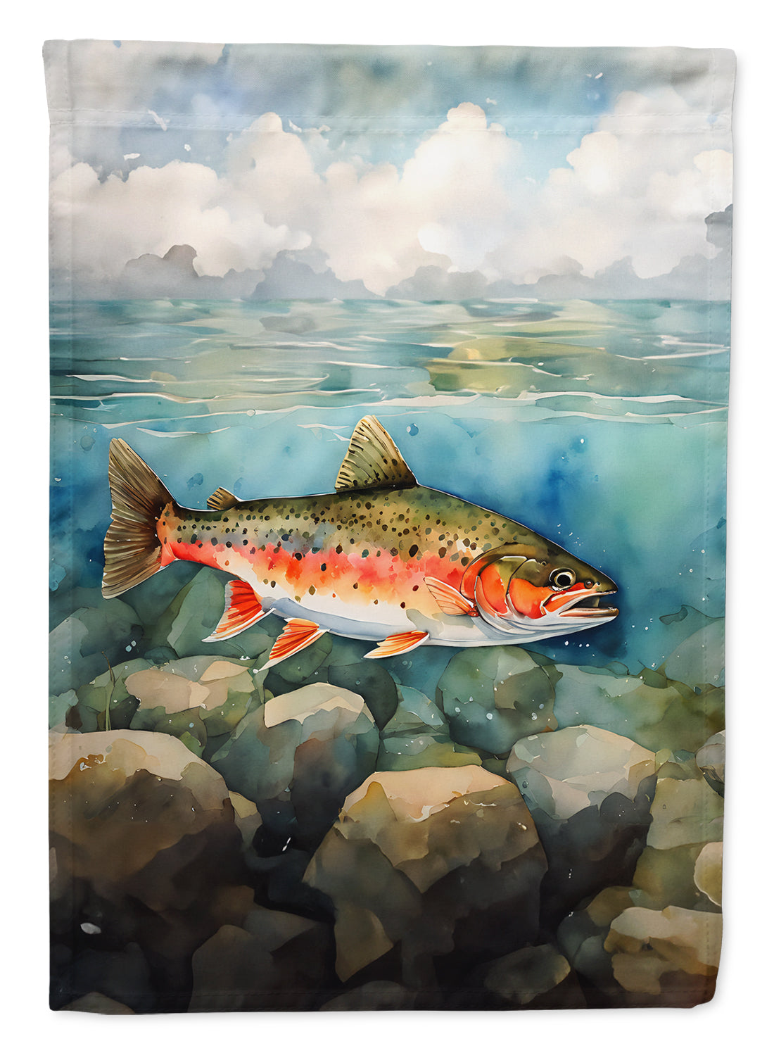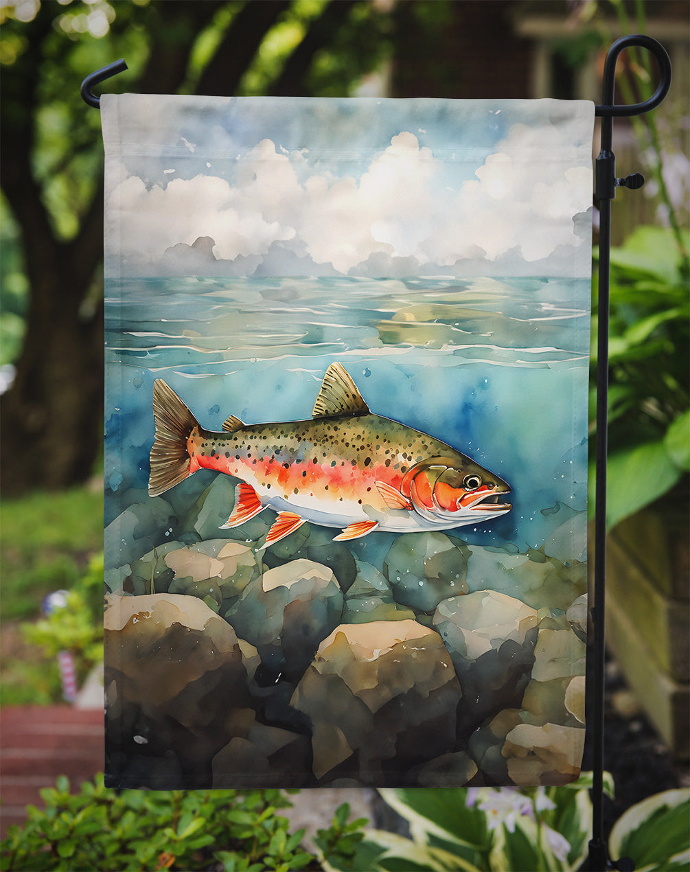 Decorate your space with Caroline's Treasures Brook Trout artwork on a Garden Flag. Enhance the beauty of your garden, patio, or yard with Caroline's Treasures Decorative Garden Flag, proudly made in the USA. Crafted from two pieces of thick, double-sided polyester fabric, this 2-ply garden flag is designed to withstand various weather conditions, making it water-resistant and weatherproof. Featuring correctly readable words on both sides, this garden flag offers a delightful visual experience from any angle. With its heavier weight, it stands out among other garden flags, ensuring stability and durability even in wind, rain, and snow. Measuring approximately 11 1/4 inches by 15 1/2 inches, this flag allows you to personalize your outdoor decor. It comes with a 1 1/2-inch sleeve sewn in, allowing easy attachment to any standard garden flag stand or garden size porch hanger (sold separately). Make a statement in your outdoor space with Caroline's Treasures Decorative Garden Flag, a vibrant and high-quality flag that adds color and personality to your surroundings. Proudly made in the USA, it's a symbol of quality craftsmanship and attention to detail.