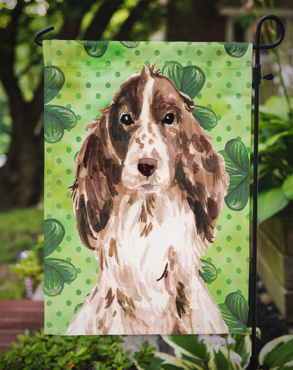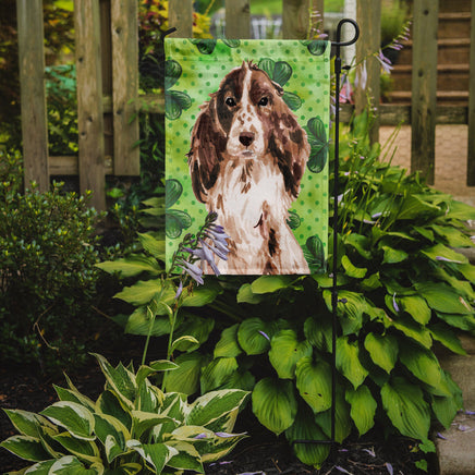 Decorate your space with Caroline's Treasures St Patrick's Day Cocker Spaniel artwork on a Garden Flag. Enhance the beauty of your garden, patio, or yard with Caroline's Treasures Decorative Garden Flag, proudly made in the USA. Crafted from two pieces of thick, double-sided polyester fabric, this 2-ply garden flag is designed to withstand various weather conditions, making it water-resistant and weatherproof. Featuring correctly readable words on both sides, this garden flag offers a delightful visual experience from any angle. With its heavier weight, it stands out among other garden flags, ensuring stability and durability even in wind, rain, and snow. Measuring approximately 11 1/4 inches by 15 1/2 inches, this flag allows you to personalize your outdoor decor. It comes with a 1 1/2-inch sleeve sewn in, allowing easy attachment to any standard garden flag stand or garden size porch hanger (sold separately). Make a statement in your outdoor space with Caroline's Treasures Decorative Garden Flag, a vibrant and high-quality flag that adds color and personality to your surroundings. Proudly made in the USA, it's a symbol of quality craftsmanship and attention to detail.