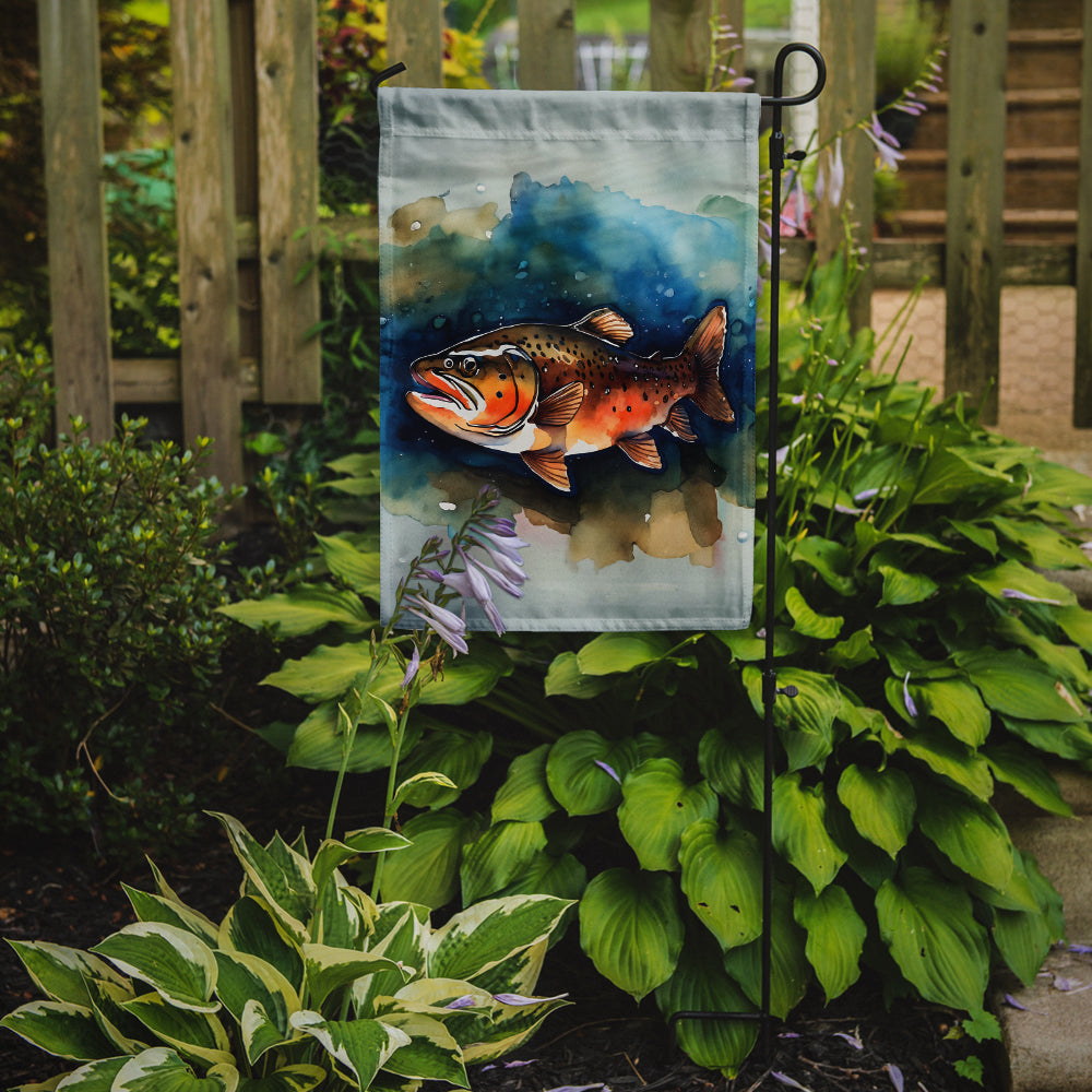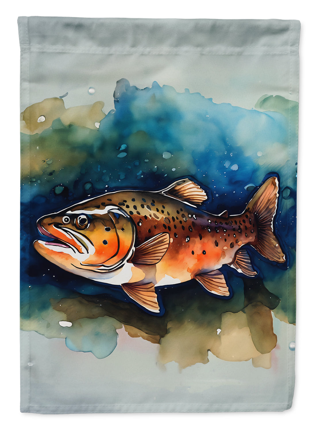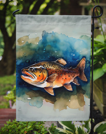 Decorate your space with Caroline's Treasures Brown Trout artwork on a Garden Flag. Enhance the beauty of your garden, patio, or yard with Caroline's Treasures Decorative Garden Flag, proudly made in the USA. Crafted from two pieces of thick, double-sided polyester fabric, this 2-ply garden flag is designed to withstand various weather conditions, making it water-resistant and weatherproof. Featuring correctly readable words on both sides, this garden flag offers a delightful visual experience from any angle. With its heavier weight, it stands out among other garden flags, ensuring stability and durability even in wind, rain, and snow. Measuring approximately 11 1/4 inches by 15 1/2 inches, this flag allows you to personalize your outdoor decor. It comes with a 1 1/2-inch sleeve sewn in, allowing easy attachment to any standard garden flag stand or garden size porch hanger (sold separately). Make a statement in your outdoor space with Caroline's Treasures Decorative Garden Flag, a vibrant and high-quality flag that adds color and personality to your surroundings. Proudly made in the USA, it's a symbol of quality craftsmanship and attention to detail.