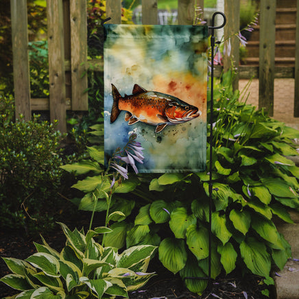 Decorate your space with Caroline's Treasures Brown Trout artwork on a Garden Flag. Enhance the beauty of your garden, patio, or yard with Caroline's Treasures Decorative Garden Flag, proudly made in the USA. Crafted from two pieces of thick, double-sided polyester fabric, this 2-ply garden flag is designed to withstand various weather conditions, making it water-resistant and weatherproof. Featuring correctly readable words on both sides, this garden flag offers a delightful visual experience from any angle. With its heavier weight, it stands out among other garden flags, ensuring stability and durability even in wind, rain, and snow. Measuring approximately 11 1/4 inches by 15 1/2 inches, this flag allows you to personalize your outdoor decor. It comes with a 1 1/2-inch sleeve sewn in, allowing easy attachment to any standard garden flag stand or garden size porch hanger (sold separately). Make a statement in your outdoor space with Caroline's Treasures Decorative Garden Flag, a vibrant and high-quality flag that adds color and personality to your surroundings. Proudly made in the USA, it's a symbol of quality craftsmanship and attention to detail.
