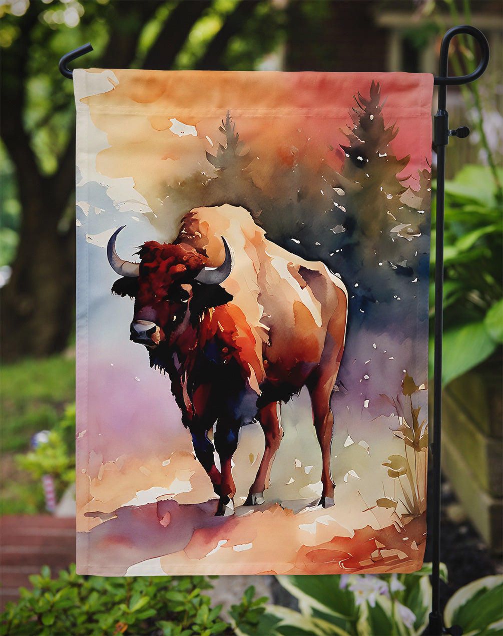Decorate your space with Caroline's Treasures Buffalo artwork on a Garden Flag. Enhance the beauty of your garden, patio, or yard with Caroline's Treasures Decorative Garden Flag, proudly made in the USA. Crafted from two pieces of thick, double-sided polyester fabric, this 2-ply garden flag is designed to withstand various weather conditions, making it water-resistant and weatherproof. Featuring correctly readable words on both sides, this garden flag offers a delightful visual experience from any angle. With its heavier weight, it stands out among other garden flags, ensuring stability and durability even in wind, rain, and snow. Measuring approximately 11 1/4 inches by 15 1/2 inches, this flag allows you to personalize your outdoor decor. It comes with a 1 1/2-inch sleeve sewn in, allowing easy attachment to any standard garden flag stand or garden size porch hanger (sold separately). Make a statement in your outdoor space with Caroline's Treasures Decorative Garden Flag, a vibrant and high-quality flag that adds color and personality to your surroundings. Proudly made in the USA, it's a symbol of quality craftsmanship and attention to detail.
