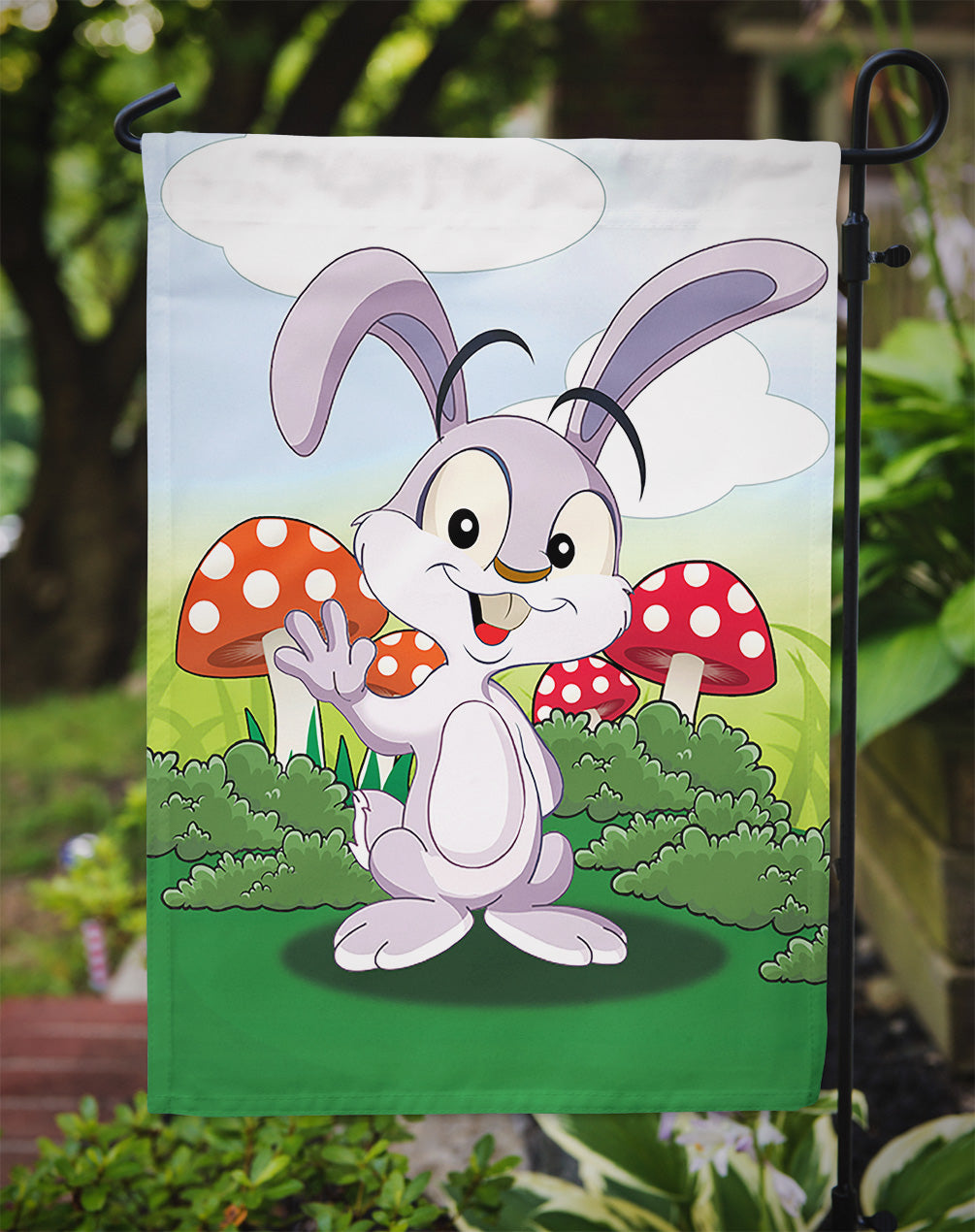 Bunny Rabbit in Mushrooms Flag Garden Size