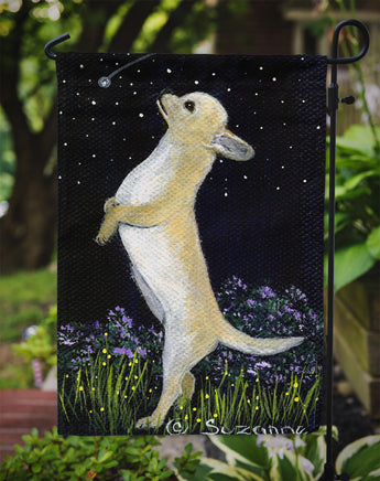Decorate your space with our Chihuahua artwork on a Garden Flag. Enhance the beauty of your garden, patio, or yard with Caroline's Treasures Decorative Garden Flag, proudly made in the USA. Crafted from two pieces of thick, double-sided polyester fabric, this 2-ply garden flag is designed to withstand various weather conditions, making it water-resistant and weatherproof. Featuring correctly readable words on both sides, this garden flag offers a delightful visual experience from any angle. With its heavier weight, it stands out among other garden flags, ensuring stability and durability even in wind, rain, and snow. Measuring approximately 11 1/4 inches by 15 1/2 inches, this flag allows you to personalize your outdoor decor. It comes with a 1 1/2-inch sleeve sewn in, allowing easy attachment to any standard garden flag stand or garden size porch hanger (sold separately). Make a statement in your outdoor space with Caroline's Treasures Decorative Garden Flag, a vibrant and high-quality flag that adds color and personality to your surroundings. Proudly made in the USA, it's a symbol of quality craftsmanship and attention to detail.