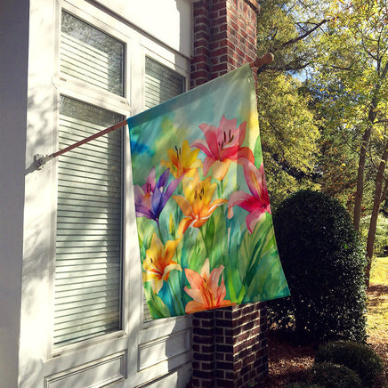 Decorate your space with Caroline's Treasures Lilies artwork on a Large Flag. Presenting Caroline's Treasures Heavy Duty Polyester House Size Decorative Sleeve Pole Flag, a vibrant addition to enhance the aesthetic appeal of your home. This large decorative flag, measuring approximately 28 x 40 inches, offers ample coverage and visibility. Each flag is meticulously sewn and made individually, ensuring a unique piece that may slightly vary in size. It's a sleeve pole flag, designed to fit a standard decorative flag pole effortlessly. Please note that the flag pole and bracket are not included and should be purchased separately. What sets Caroline's Treasures flag apart is its dual-sided print. The design is mirrored on both sides of the fabric, allowing for uniform visibility regardless of the angle. To ensure lasting vibrancy and durability, the dyes are heat-set into the fabric. This ensures your flag remains bright and captivating through various weather conditions. Elevate the look of your home with Caroline's Treasures Heavy Duty Polyester House Size Decorative Sleeve Pole Flag!