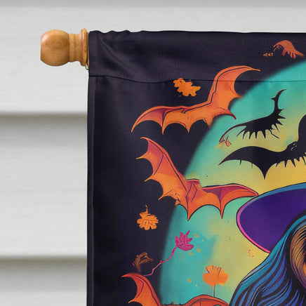 Longhair Black and Tan Dachshund Witchy Halloween House Flag
