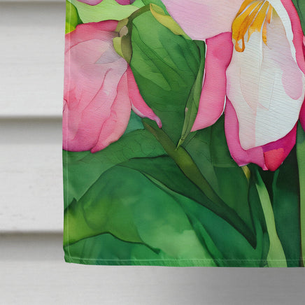 Minnesota Pink and White Lady�s Slippers in Watercolor House Flag