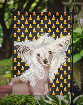 Chinese Crested Candy Corn Halloween Portrait Flag Garden Size