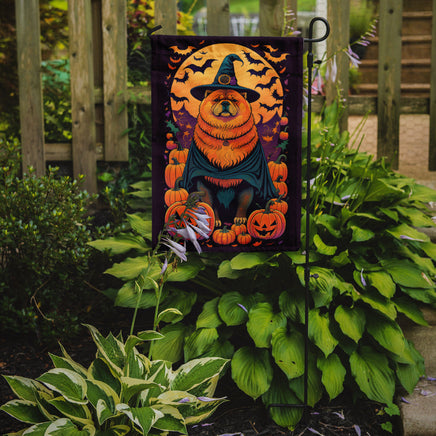 Decorate your space with Caroline's Treasures Halloween Chow Chow artwork on a Garden Flag. Enhance the beauty of your garden, patio, or yard with Caroline's Treasures Decorative Garden Flag, proudly made in the USA. Crafted from two pieces of thick, double-sided polyester fabric, this 2-ply garden flag is designed to withstand various weather conditions, making it water-resistant and weatherproof. Featuring correctly readable words on both sides, this garden flag offers a delightful visual experience from any angle. With its heavier weight, it stands out among other garden flags, ensuring stability and durability even in wind, rain, and snow. Measuring approximately 11 1/4 inches by 15 1/2 inches, this flag allows you to personalize your outdoor decor. It comes with a 1 1/2-inch sleeve sewn in, allowing easy attachment to any standard garden flag stand or garden size porch hanger (sold separately). Make a statement in your outdoor space with Caroline's Treasures Decorative Garden Flag, a vibrant and high-quality flag that adds color and personality to your surroundings. Proudly made in the USA, it's a symbol of quality craftsmanship and attention to detail.