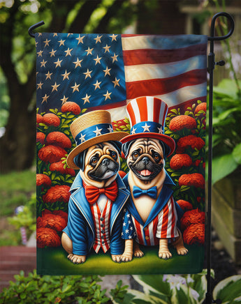 Decorate your space with our Pug artwork on a Garden Flag. Enhance the beauty of your garden, patio, or yard with Caroline's Treasures Decorative Garden Flag, proudly made in the USA. Crafted from two pieces of thick, double-sided polyester fabric, this 2-ply garden flag is designed to withstand various weather conditions, making it water-resistant and weatherproof. Featuring correctly readable words on both sides, this garden flag offers a delightful visual experience from any angle. With its heavier weight, it stands out among other garden flags, ensuring stability and durability even in wind, rain, and snow. Measuring approximately 11 1/4 inches by 15 1/2 inches, this flag allows you to personalize your outdoor decor. It comes with a 1 1/2-inch sleeve sewn in, allowing easy attachment to any standard garden flag stand or garden size porch hanger (sold separately). Make a statement in your outdoor space with Caroline's Treasures Decorative Garden Flag, a vibrant and high-quality flag that adds color and personality to your surroundings. Proudly made in the USA, it's a symbol of quality craftsmanship and attention to detail.