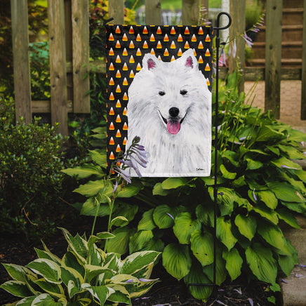 Decorate your space with our Halloween American Eskimo artwork on a Garden Flag. Enhance the beauty of your garden, patio, or yard with Caroline's Treasures Decorative Garden Flag, proudly made in the USA. Crafted from two pieces of thick, double-sided polyester fabric, this 2-ply garden flag is designed to withstand various weather conditions, making it water-resistant and weatherproof. Featuring correctly readable words on both sides, this garden flag offers a delightful visual experience from any angle. With its heavier weight, it stands out among other garden flags, ensuring stability and durability even in wind, rain, and snow. Measuring approximately 11 1/4 inches by 15 1/2 inches, this flag allows you to personalize your outdoor decor. It comes with a 1 1/2-inch sleeve sewn in, allowing easy attachment to any standard garden flag stand or garden size porch hanger (sold separately). Make a statement in your outdoor space with Caroline's Treasures Decorative Garden Flag, a vibrant and high-quality flag that adds color and personality to your surroundings. Proudly made in the USA, it's a symbol of quality craftsmanship and attention to detail.