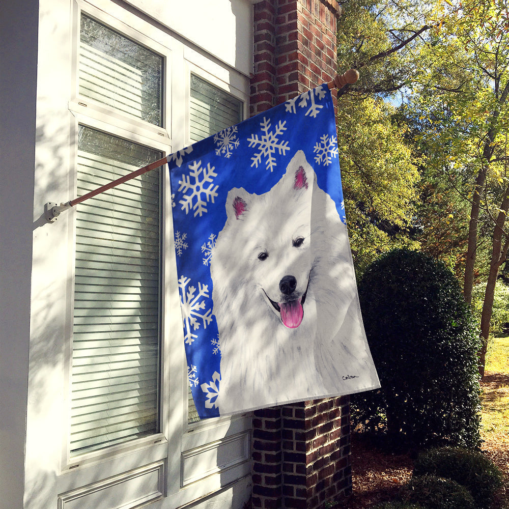 American Eskimo Winter Snowflakes Holiday Flag Canvas House Size