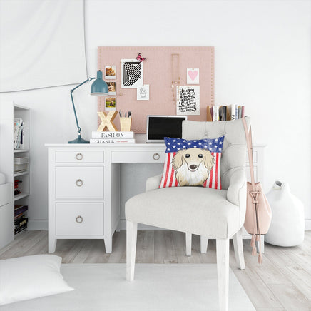 Decorate your space with our Dachshund artwork on a Pillow. Add a touch of vibrancy and comfort to your outdoor seating with Caroline's Treasures Fabric Decorative Pillow. Measuring approximately 14 inches by 14 inches, this outdoor pillow is crafted to elevate the appeal of your patio furniture, infusing it with vivid color and artistic flair. The pillow includes a 100% Polyester Fabric sham filled with a quality pillow form to provide superior comfort. Innovatively made from our brand new material, specifically woven for its water resistance, this pillow is designed for durability. The soft canvas fabric offers versatility in use, fit for your indoor couch or your outdoor patio, porch, or veranda. The fabric is dyed with colorfast dyes built for resilience against weather conditions, ensuring the pillow retains its beauty over time. Constructed by sewing three fabric pieces to create a sham, the polyester insert is then nestled inside to form the pillow, resulting in an overstuffed pillow that maintains its shape. Both the sham and the pillow insert are proudly made in the United States. As the pillows are handcrafted, there may be minor variations in size, further enhancing their unique charm. Experience comfort in style with Caroline's Treasures Fabric Decorative Pillow.