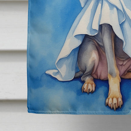 Decorate your space with our Christmas American Hairless Terrier artwork on a Large Flag. Presenting our Heavy Duty Polyester House Size Decorative Sleeve Pole Flag, a vibrant addition to enhance the aesthetic appeal of your home. This large decorative flag, measuring approximately 28 x 40 inches, offers ample coverage and visibility. Each flag is meticulously sewn and made individually, ensuring a unique piece that may slightly vary in size. It's a sleeve pole flag, designed to fit a standard decorative flag pole effortlessly. Please note that the flag pole and bracket are not included and should be purchased separately. What sets our flag apart is its dual-sided print. The design is mirrored on both sides of the fabric, allowing for uniform visibility regardless of the angle. Printed in full color, our flag showcases vibrant hues that truly stand out. To ensure lasting vibrancy and durability, the dyes are heat-set into the fabric. This ensures your flag remains bright and captivating through various weather conditions. Elevate the look of your home with our Heavy Duty Polyester House Size Decorative Sleeve Pole Flag!