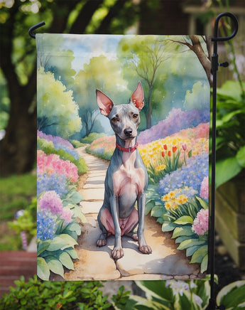 Decorate your space with our American Hairless Terrier artwork on a Garden Flag. Bring a bit of Spring into your home with a Spring Garden Flag. Enhance the beauty of your garden, patio, or yard with Caroline's Treasures Decorative Garden Flag, proudly made in the USA. Crafted from two pieces of thick, double-sided polyester fabric, this 2-ply garden flag is designed to withstand various weather conditions, making it water-resistant and weatherproof. Featuring correctly readable words on both sides, this garden flag offers a delightful visual experience from any angle. With its heavier weight, it stands out among other garden flags, ensuring stability and durability even in wind, rain, and snow. Measuring approximately 11 1/4 inches by 15 1/2 inches, this flag allows you to personalize your outdoor decor. It comes with a 1 1/2-inch sleeve sewn in, allowing easy attachment to any standard garden flag stand or garden size porch hanger (sold separately). Make a statement in your outdoor space with Caroline's Treasures Decorative Garden Flag, a vibrant and high-quality flag that adds color and personality to your surroundings. Proudly made in the USA, it's a symbol of quality craftsmanship and attention to detail.
