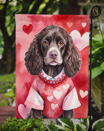 Decorate your space with our Valentine's Day American Water Spaniel artwork on a Garden Flag. Enhance the beauty of your garden, patio, or yard with Caroline's Treasures Decorative Garden Flag, proudly made in the USA. Crafted from two pieces of thick, double-sided polyester fabric, this 2-ply garden flag is designed to withstand various weather conditions, making it water-resistant and weatherproof. Featuring correctly readable words on both sides, this garden flag offers a delightful visual experience from any angle. With its heavier weight, it stands out among other garden flags, ensuring stability and durability even in wind, rain, and snow. Measuring approximately 11 1/4 inches by 15 1/2 inches, this flag allows you to personalize your outdoor decor. It comes with a 1 1/2-inch sleeve sewn in, allowing easy attachment to any standard garden flag stand or garden size porch hanger (sold separately). Make a statement in your outdoor space with Caroline's Treasures Decorative Garden Flag, a vibrant and high-quality flag that adds color and personality to your surroundings. Proudly made in the USA, it's a symbol of quality craftsmanship and attention to detail.