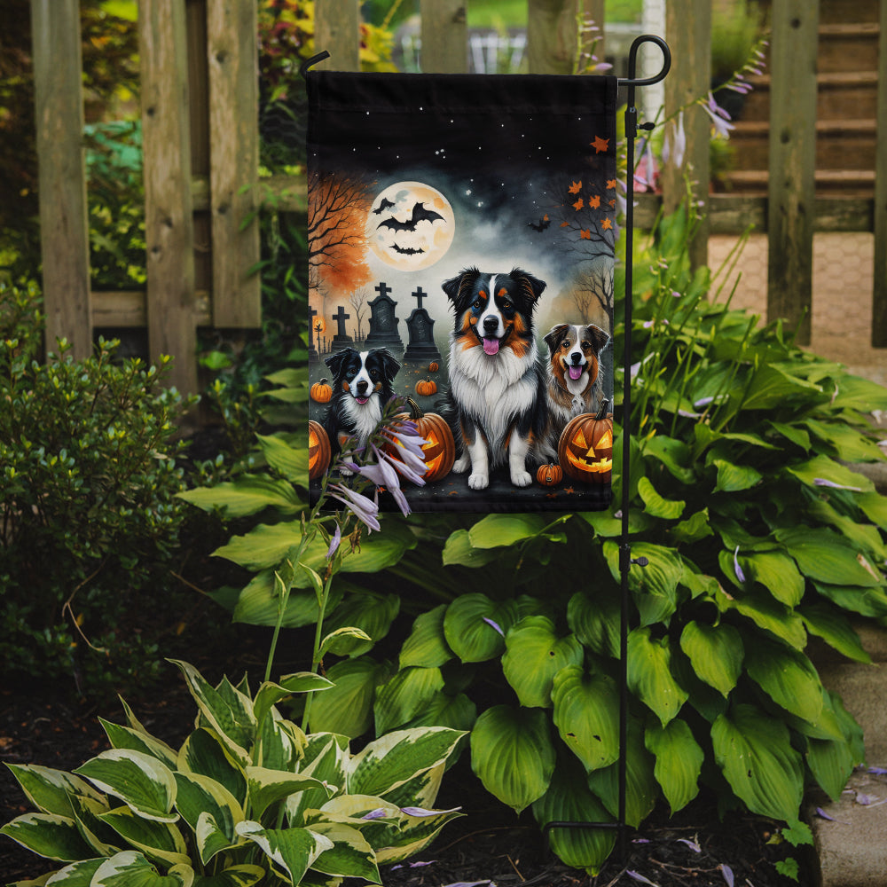 Decorate your space with our Halloween Australian Shepherd artwork on a Garden Flag. Enhance the beauty of your garden, patio, or yard with Caroline's Treasures Decorative Garden Flag, proudly made in the USA. Crafted from two pieces of thick, double-sided polyester fabric, this 2-ply garden flag is designed to withstand various weather conditions, making it water-resistant and weatherproof. Featuring correctly readable words on both sides, this garden flag offers a delightful visual experience from any angle. With its heavier weight, it stands out among other garden flags, ensuring stability and durability even in wind, rain, and snow. Measuring approximately 11 1/4 inches by 15 1/2 inches, this flag allows you to personalize your outdoor decor. It comes with a 1 1/2-inch sleeve sewn in, allowing easy attachment to any standard garden flag stand or garden size porch hanger (sold separately). Make a statement in your outdoor space with Caroline's Treasures Decorative Garden Flag, a vibrant and high-quality flag that adds color and personality to your surroundings. Proudly made in the USA, it's a symbol of quality craftsmanship and attention to detail.